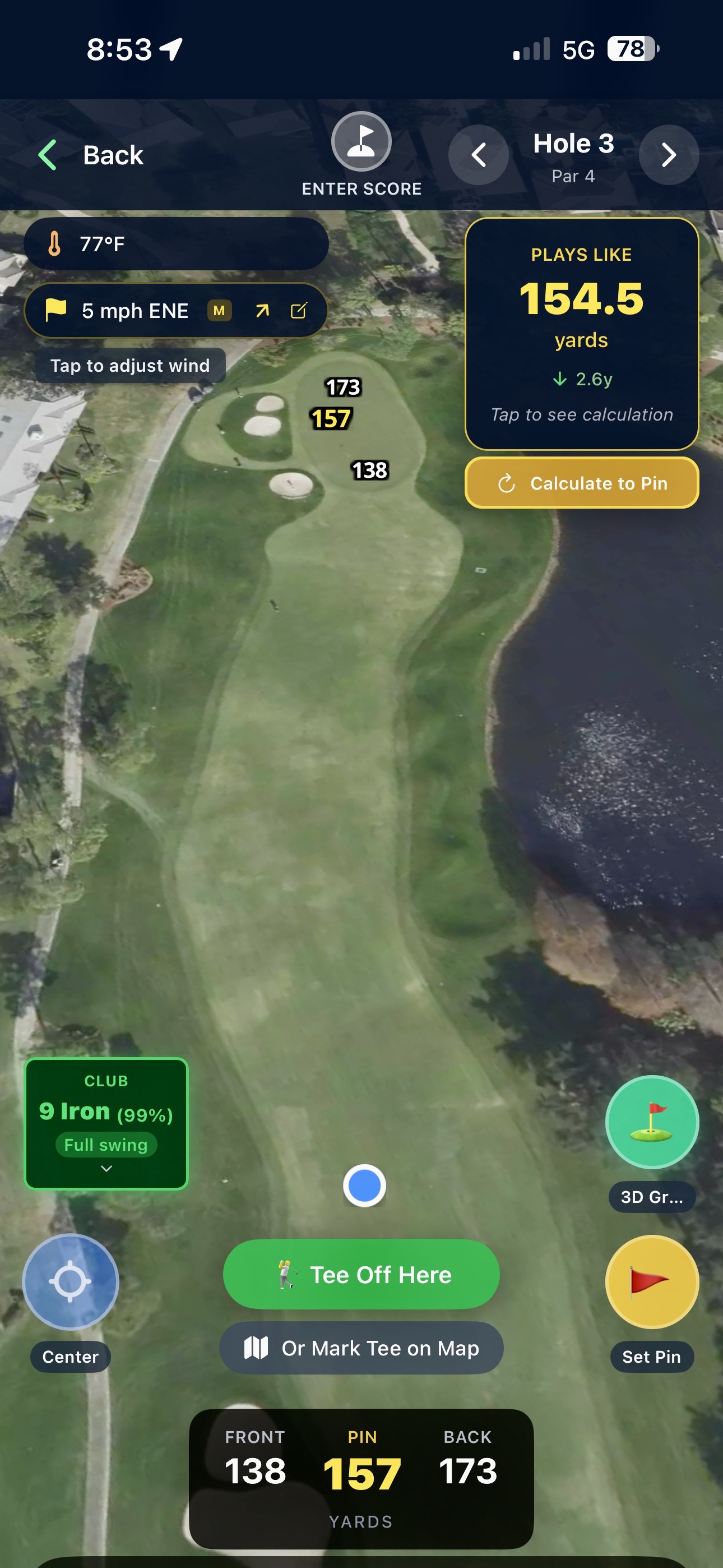 Plan your approach and read your putts. Set the pin location anywhere on the green and your plays-like distance updates instantly—giving you precise yardage to today's pin.