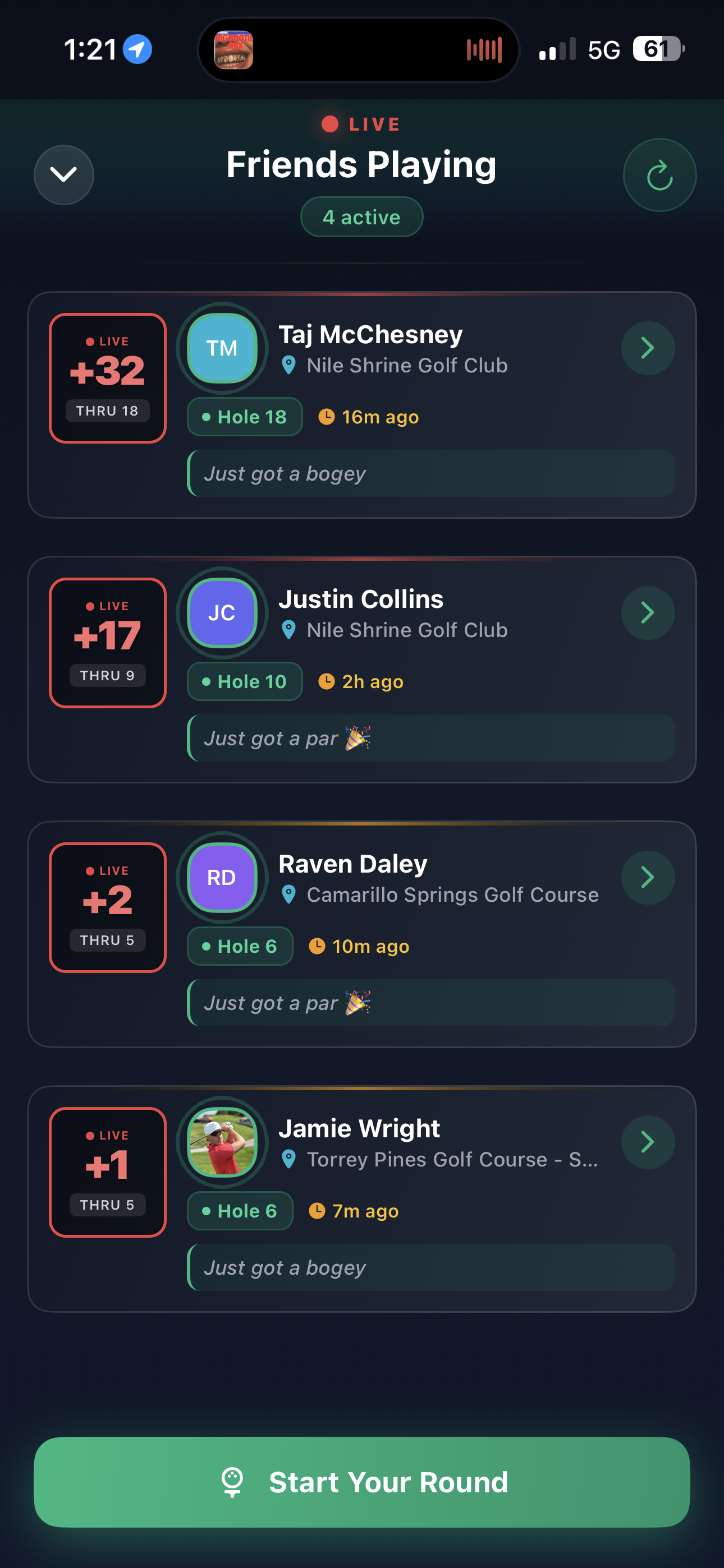 Watch friends play hole-by-hole. Comment on their round in real-time and get notified when they sink a big putt.